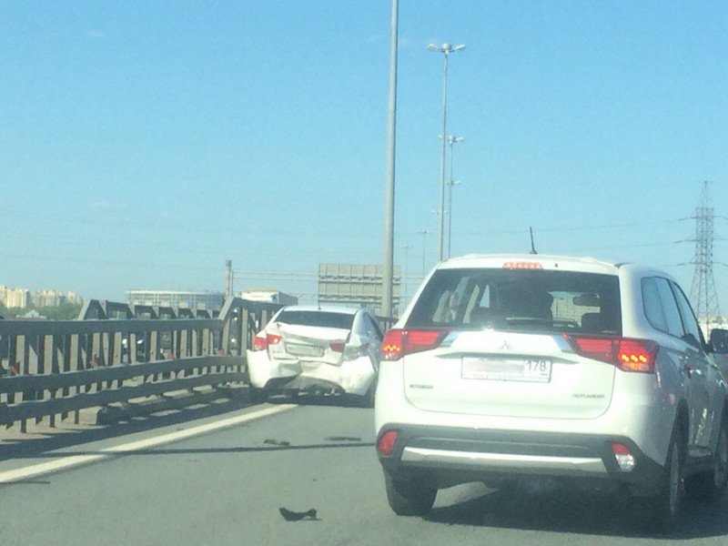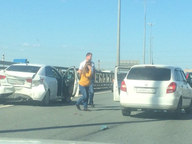 Авария с участием двух автомобилей произошла у Вантового моста днем 13 мая около 15:52 в Санкт-Петербурге. В результате ДТП пострадали беременная женщина и маленький ребенок.