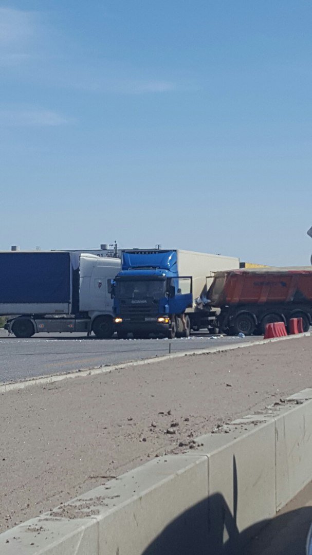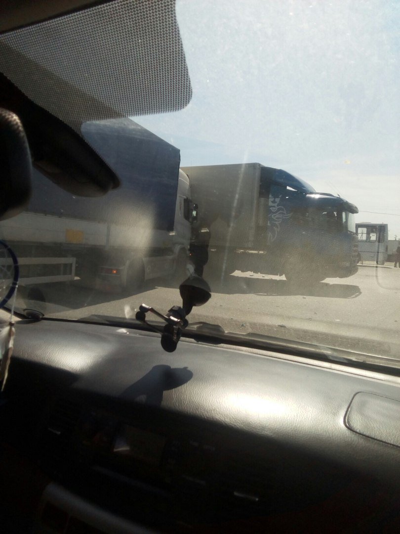 По сообщениям очевидцев, на перекрестке дорогу не поделили три грузовика. Кроме того, сообщается, что в массовом ДТП участвовало и маршрутное такси.