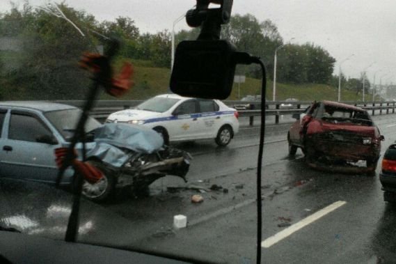 По словам очевидцев, скорее всего, столкновение произошло из-за мокрой от дождя дороги.