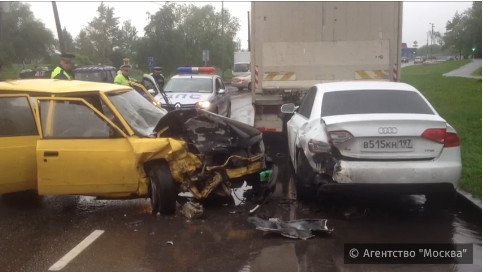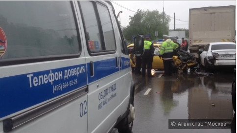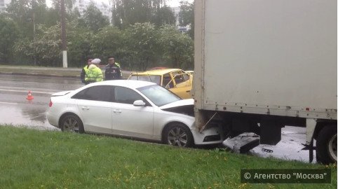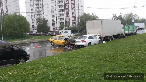 Три автомобиля столкнулись на юге Москвы сегодня, 20 мая, около 14:00 в результате чего пострадали три человека.