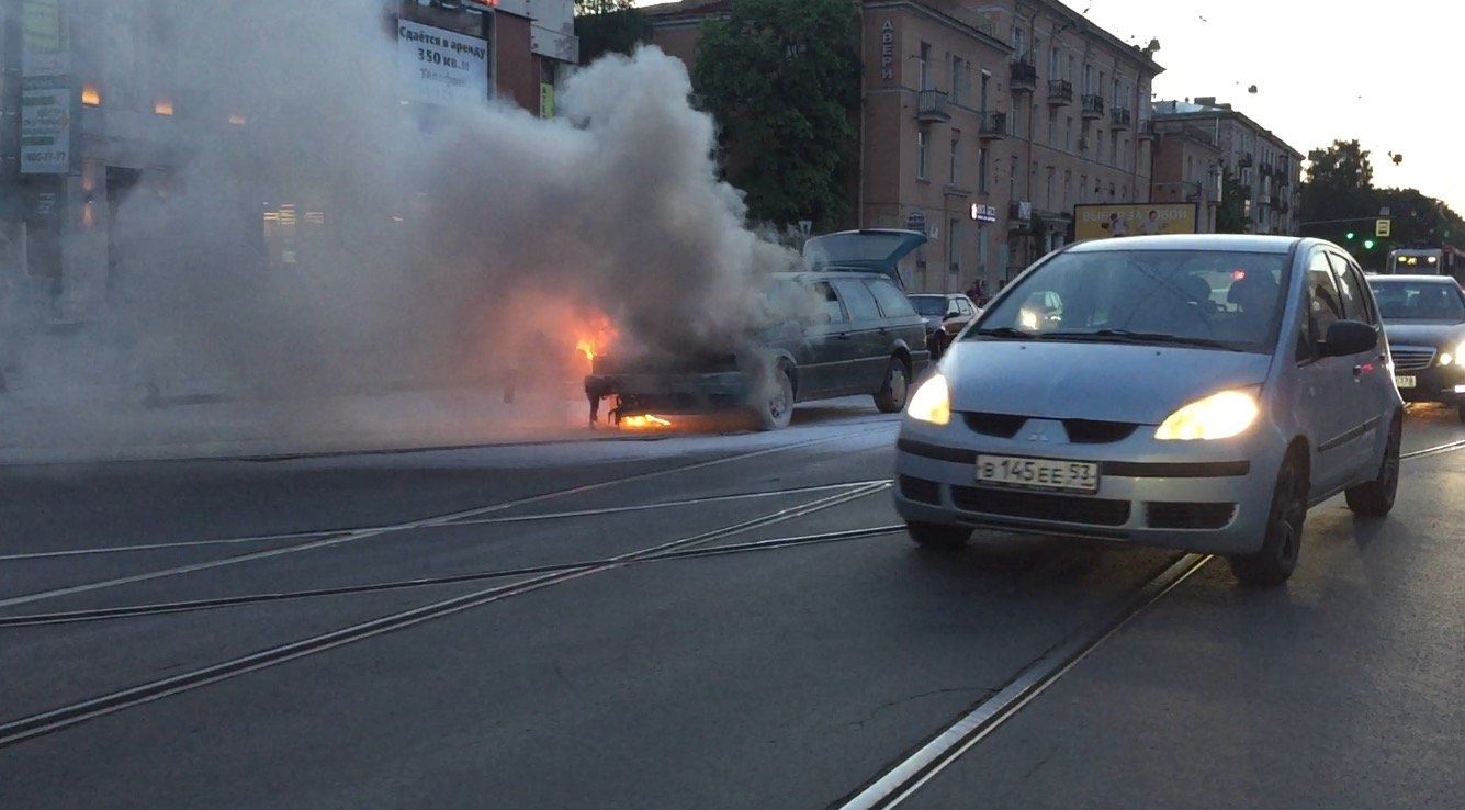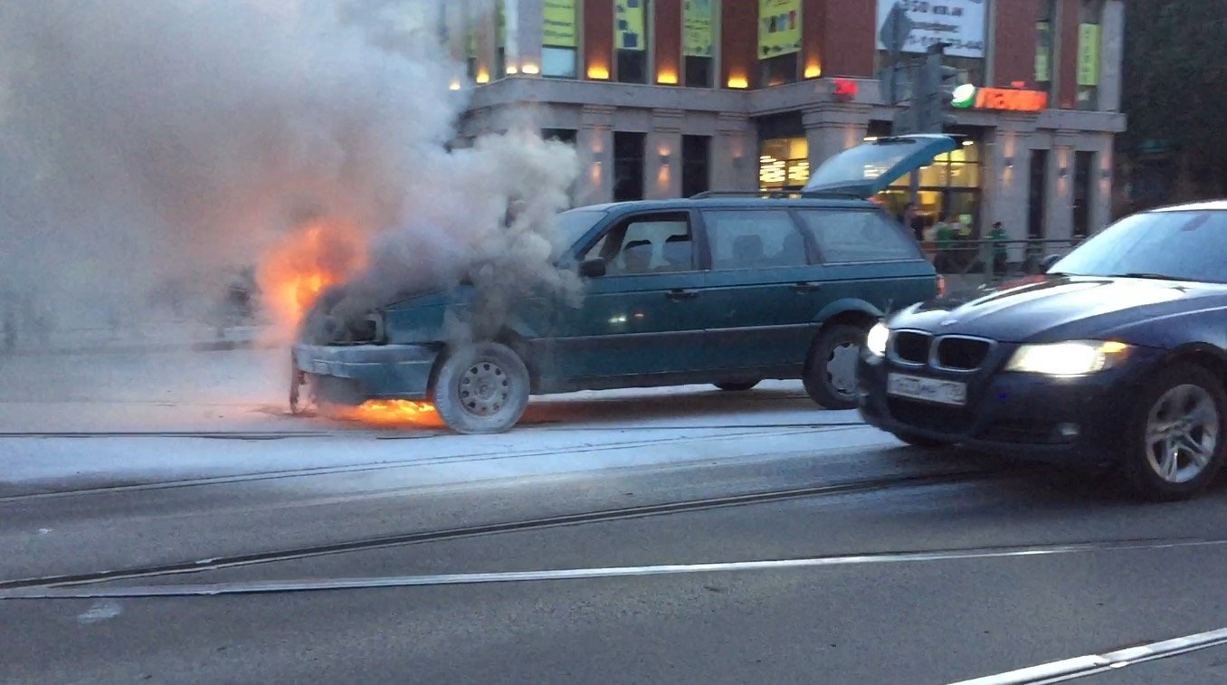 Фольксваген сгорел открытым огнем на проспекте Энгельса
