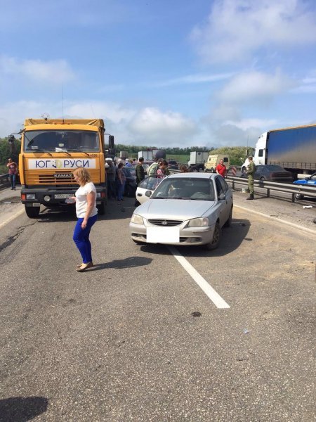 Массовое ДТП произошло сегодня, 24 мая, в Ростовской области - на 1010 километре трассы М-4 «Дон». Грузовой автомобиль DAF «догнал» Toyota Camry, а затем протаранил ещё 12 автомобилей.