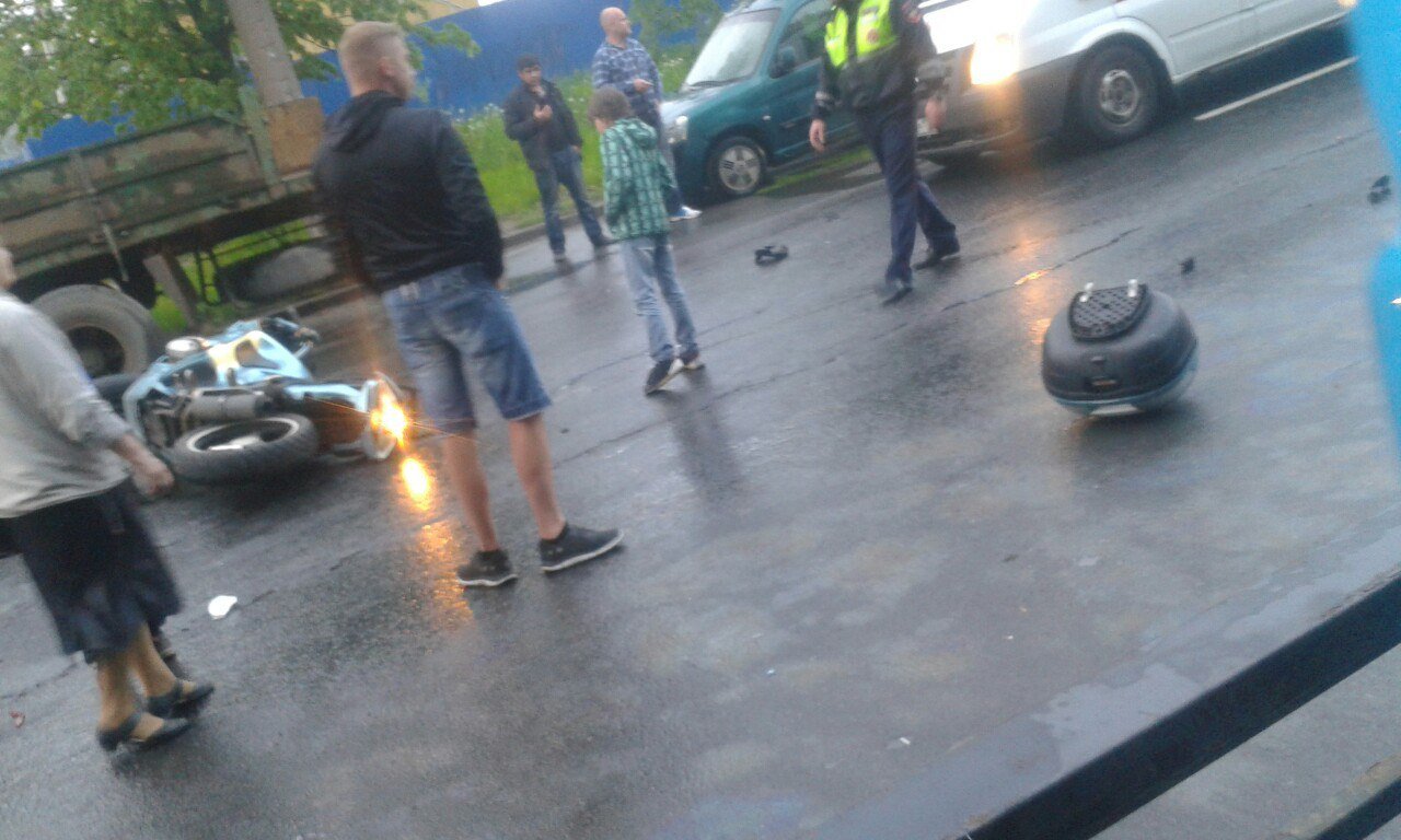 Авария с участием мотоциклиста произошла вечером 25 мая на Придорожной аллее, в результате чего водитель мотоцикла получил травмы.