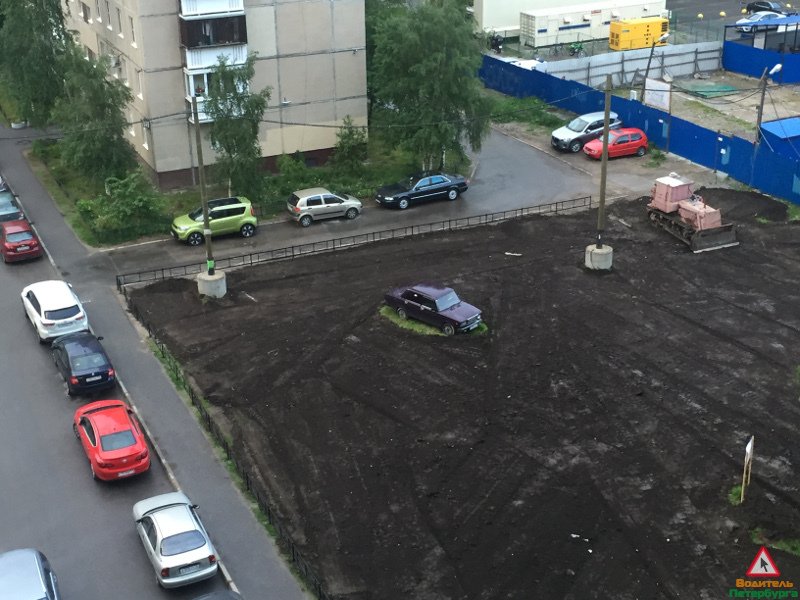 «И стоит он теперь, окружённый забором и разровненной землёй на островке газона, как памятник паркующимся на газоне», – добавляет читатель сайта «Водитель Петербурга», приславший в редакцию фото этого «памятника».