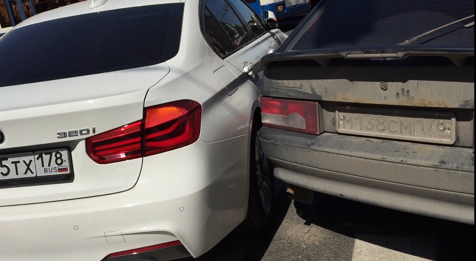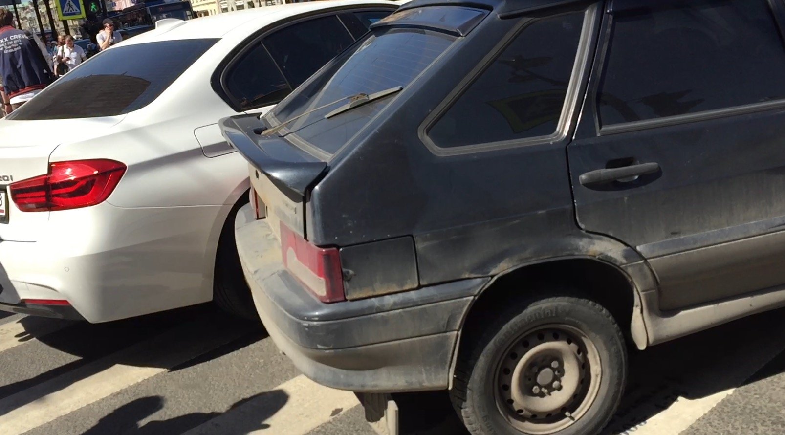 Столкновение двух легковых автомобилей (BMW 3 Series и ВАЗ переднеприводного семейства) произошло днем на выезде на перекресток Владимирского и Невского проспектов.