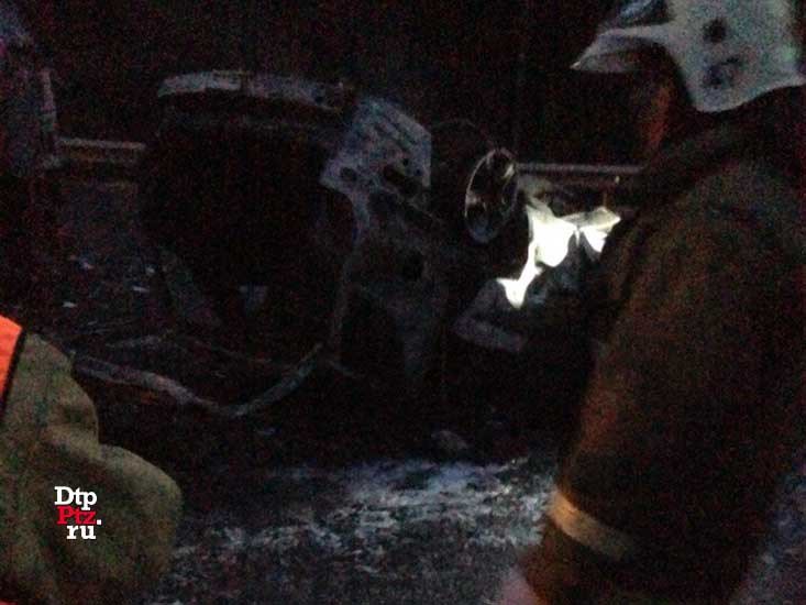 В результате аварии погибли три человека из легковушки – все они сгорели в машине.