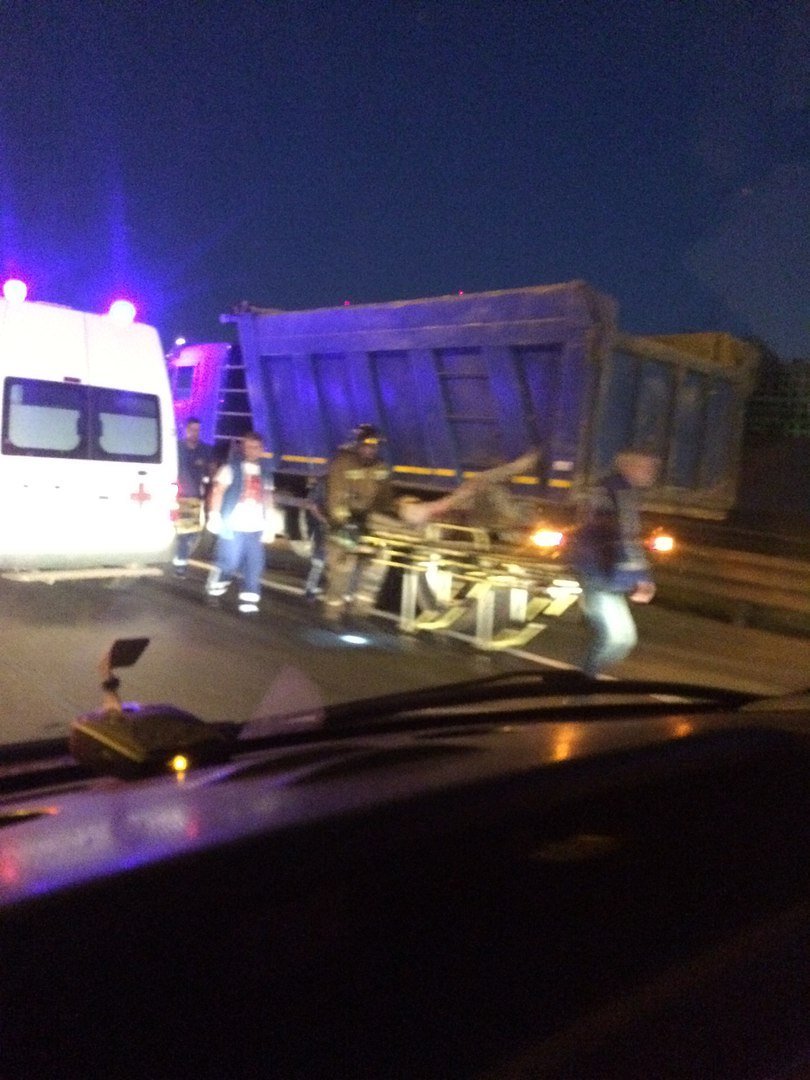 Авария произошла вчера вечером, 2 июня, в 23:52на 50 км внутреннего кольца КАД в Санкт-Петербурге. Легковой автомобиль Nissan врезался в грузовик.