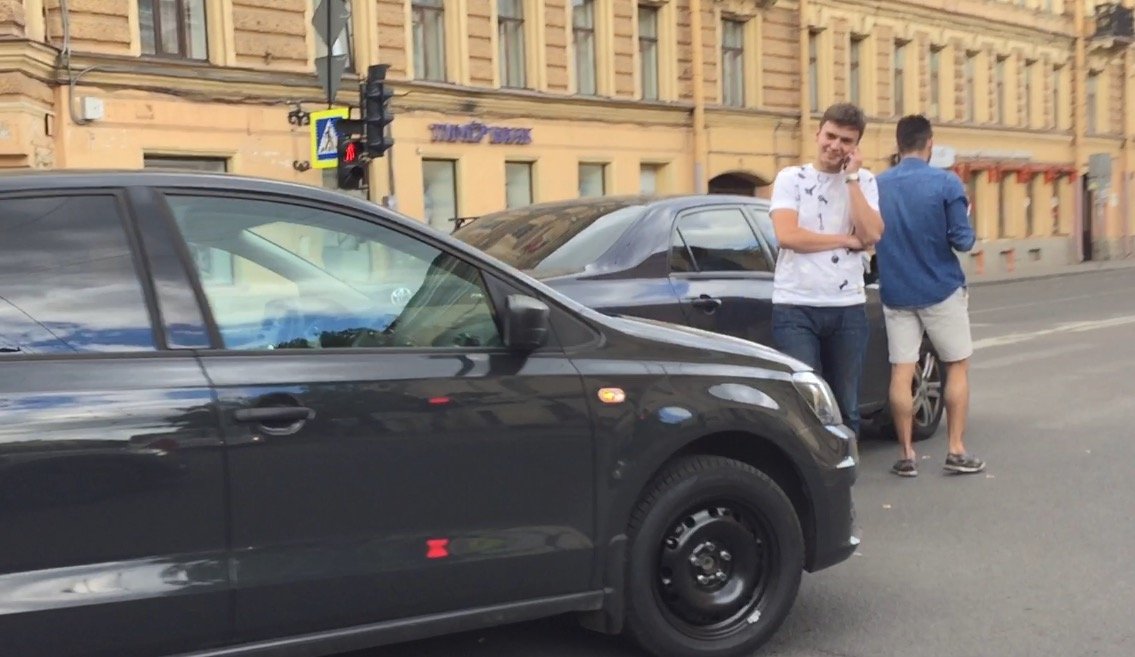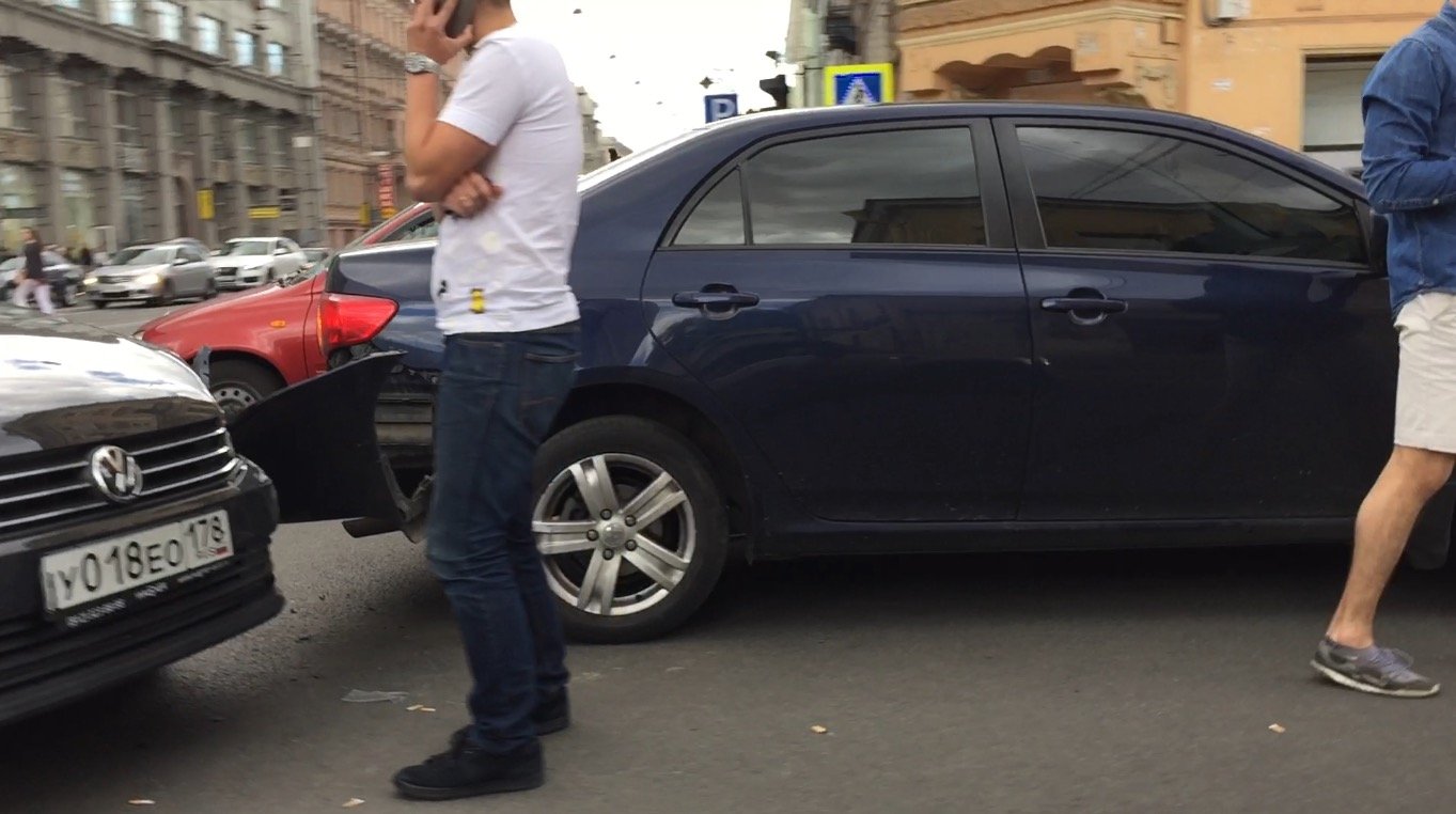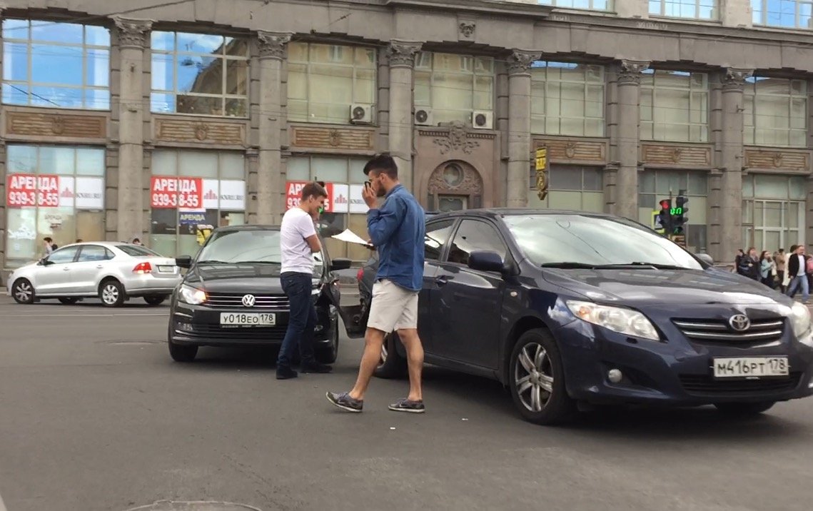 Досадная авария на повороте с Литейного проспекта на улицу Жуковского - неудачное маневрирование водителей привело к столкновению машин, в результате которого у Тойоты оторвалась часть заднего бампера. Никто не пострадал.