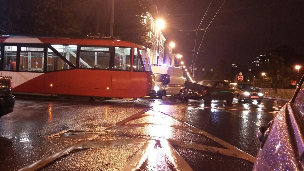 По сообщениям очевидцев, дорогу не поделили автомобиль BMW и трамвай, следовавший в парк.