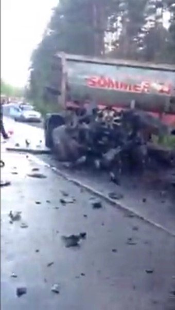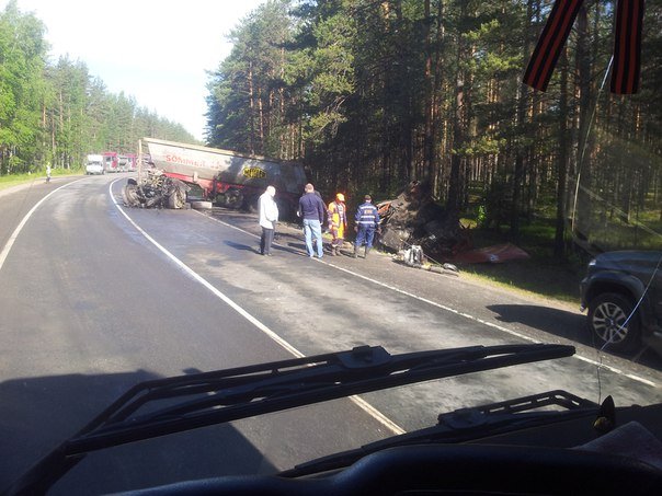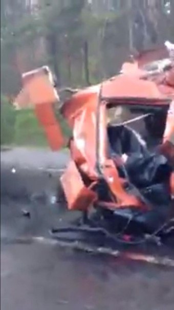 По предварительной информации, на дороге лоб в лоб столкнулись два большегруза - Volvo и Iveco. От сильнейшего удара кабина одного из автомобилей буквально превратилась в груду металла.