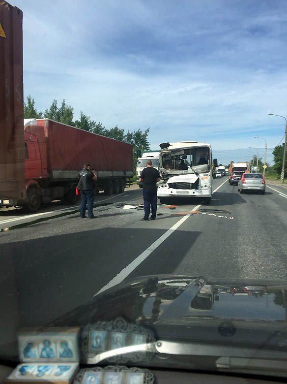 По предварительной информации, маршрутка №201 на скорости врезался в грузовой автомобиль Volvo, остановившийся, чтобы пропустить людей, переходивших дорогу по нерегулируемому переходу.