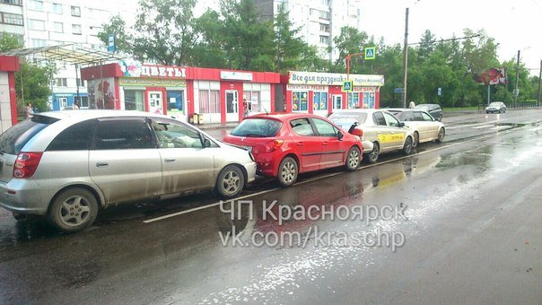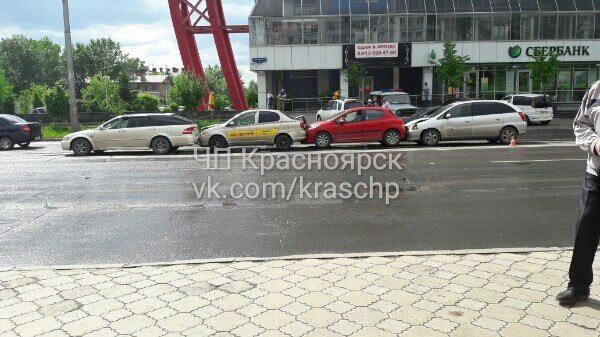 В Красноярске в среду 8 июня произошла авария с участием четырех автомобилей на улице Краснодарская в районе дома № 8.