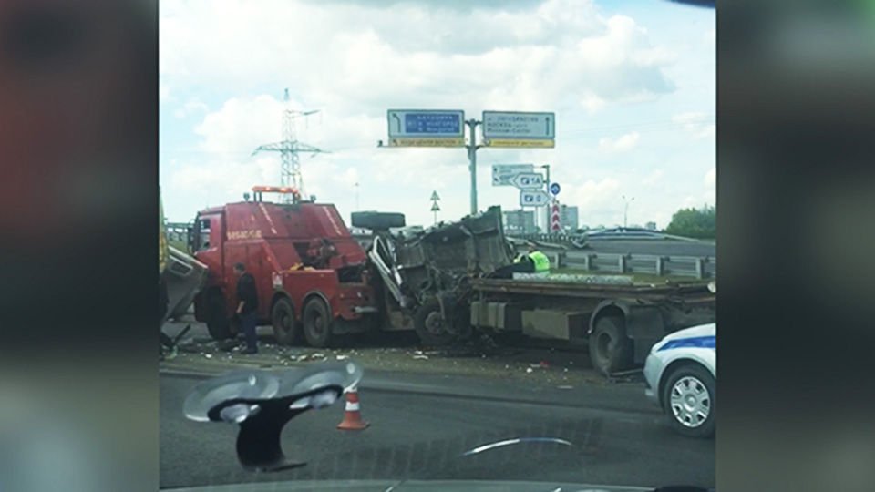 Авария произошла 10 июня в 07:25 на МКАД в Москве. При съезде с шоссе Энтузиавтов столкнулись две фуры.