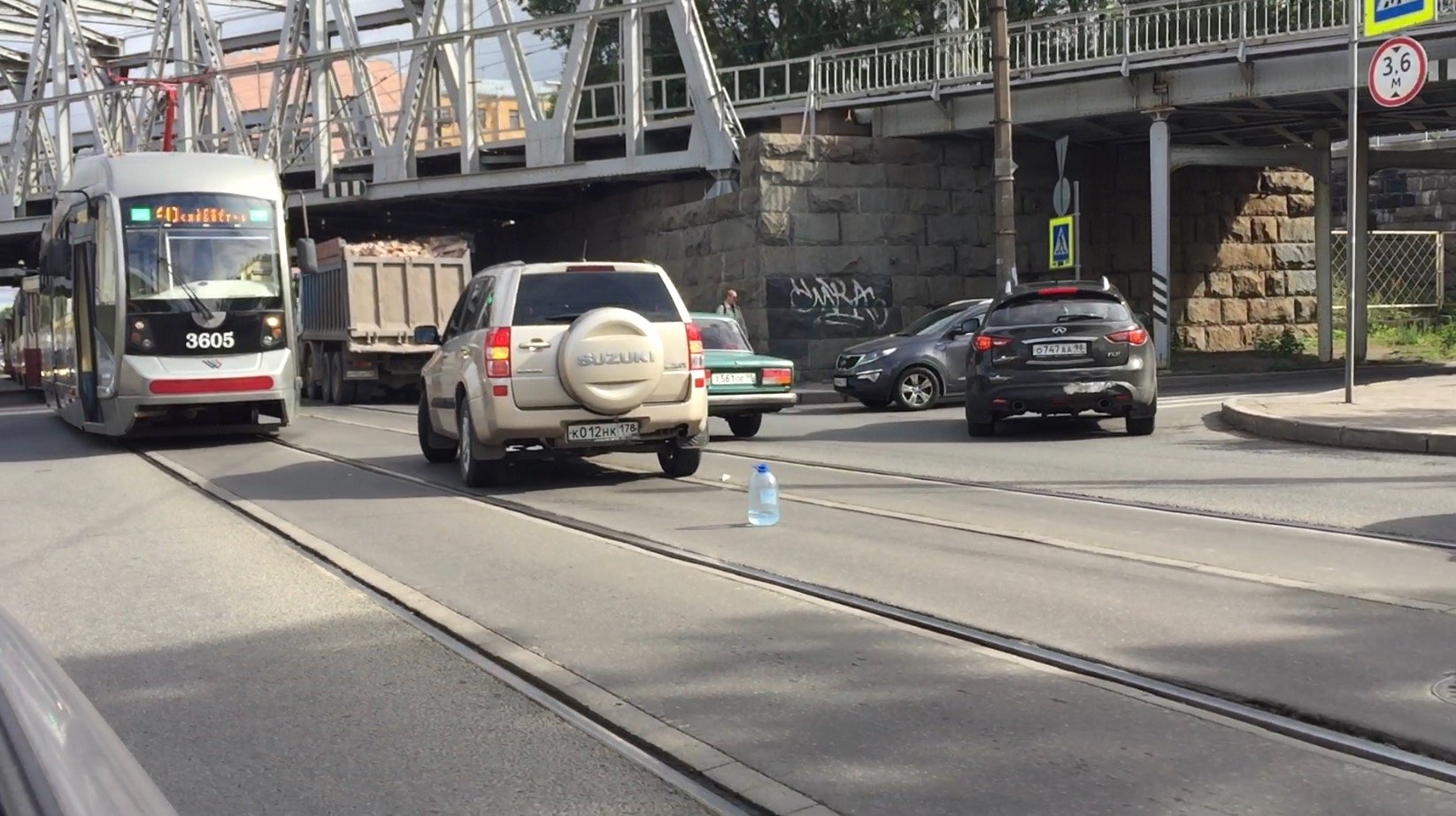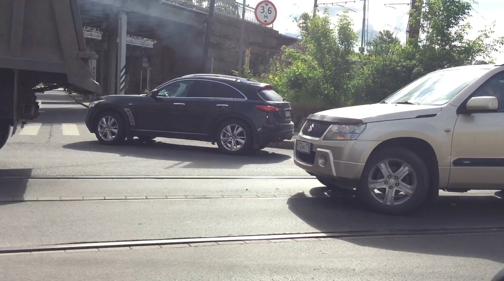 Утренняя авария - столкновение двух автомобилей на трамвайных путях создала серьезные задержки движения утром в пятницу 10 июня на Большом Самсоньевском проспекте у железнодорожного моста.