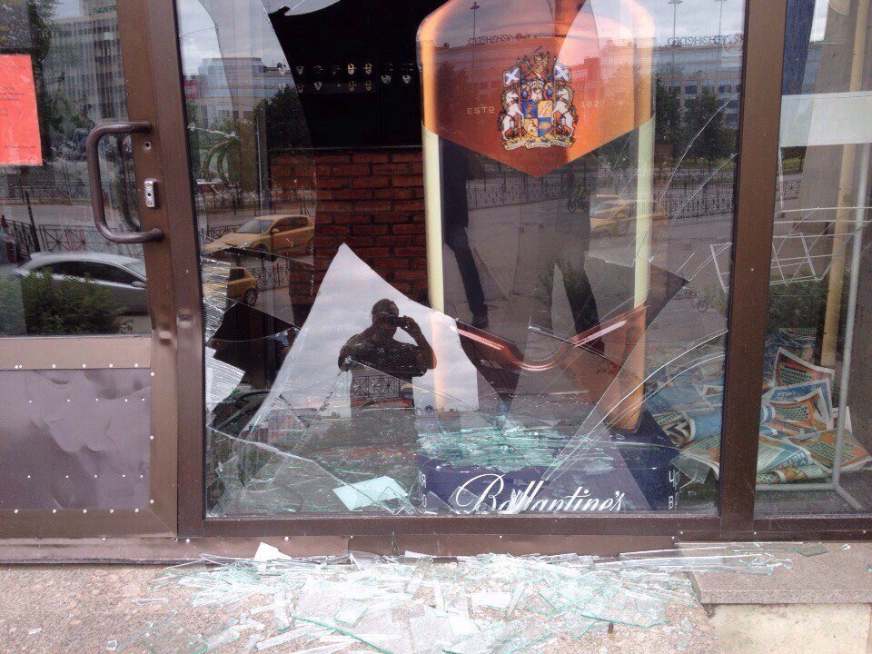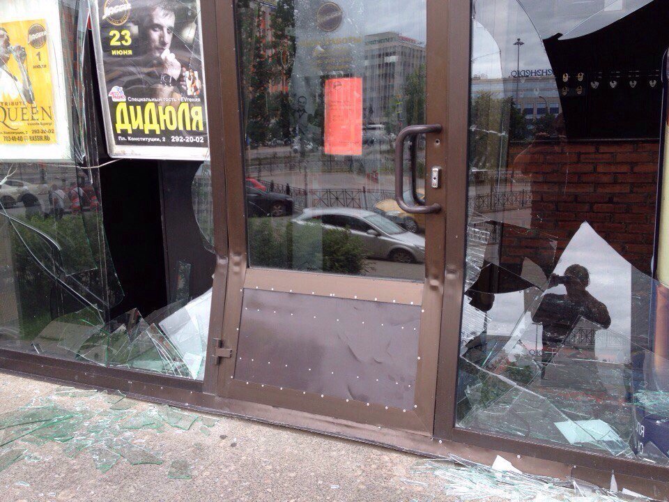 Сразу после этой акции внедорожник съехал вниз, развернулся и уехал в неизвестном направлении. Номерные знаки на машине отсутствовали. Момент наезда заснят камерами наблюдения. В холле клуба в этот момент находилась девушка-администратор, видевшая все происходящее. Она не пострадала.