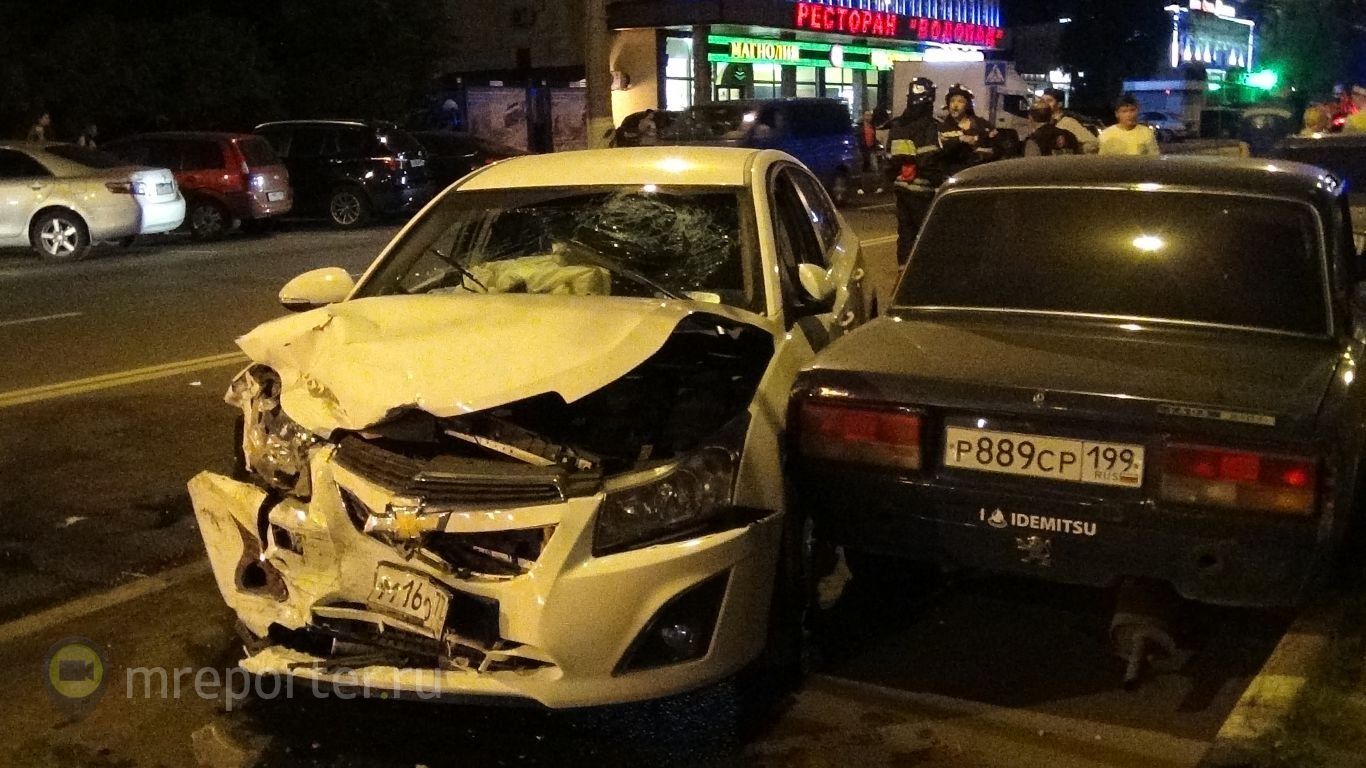 В Москве произошло лобовое столкновение двух иномарок, есть пострадавшие