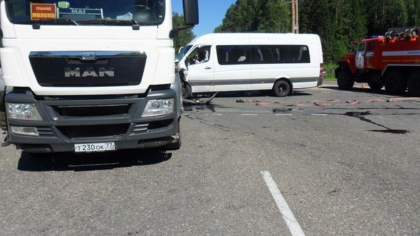 По предварительной информации, молоковоз MAN, выезжая со второстепенной дороги на главную, не уступил пассажирскому микроавтобусу Mercedes-Benz Sprinter, из-за чего произошло столкновение.