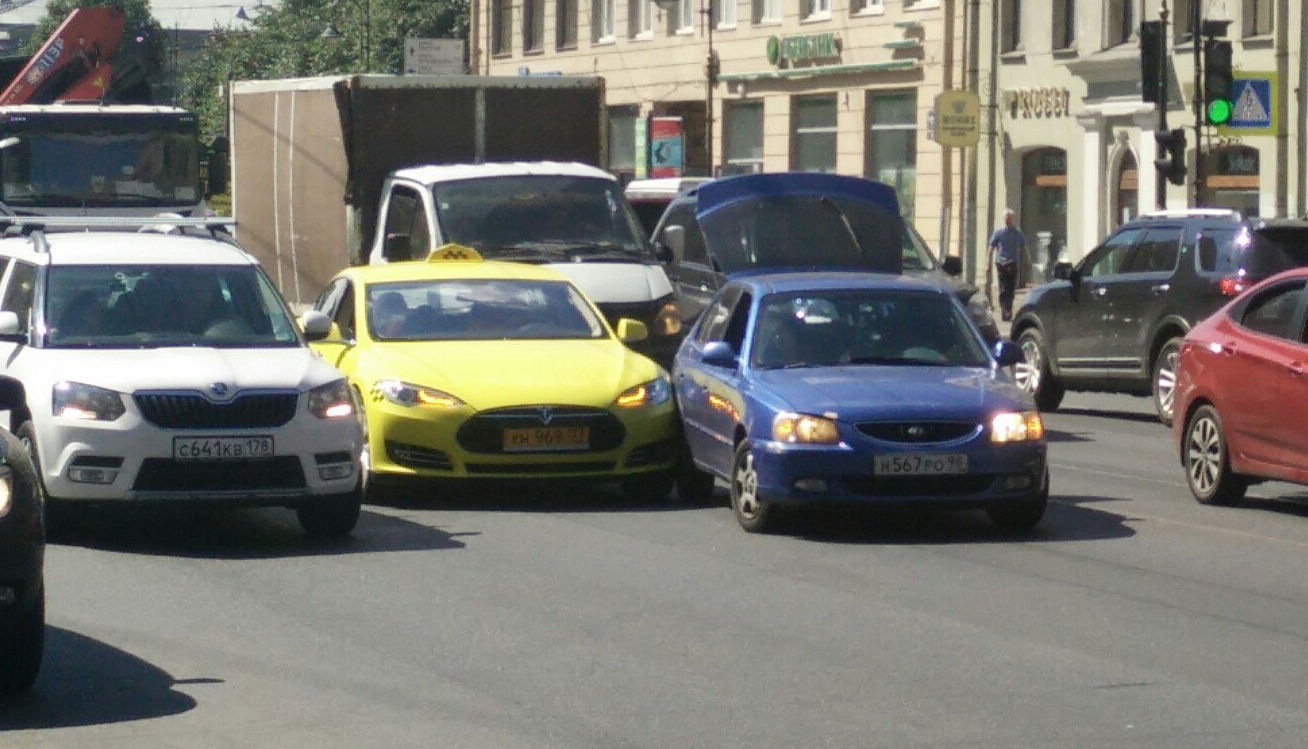 Сегодня, 2 июля, около 12 часов дня на Литейном проспекте в Санкт-Петербурге попал в небольшую аварию электрокар «Тесла», который используется службой «Яндекс.Такси». ДТП случилось недалеко от торгового центра «Галерея», где расположена зарядная станция для электрокаров.