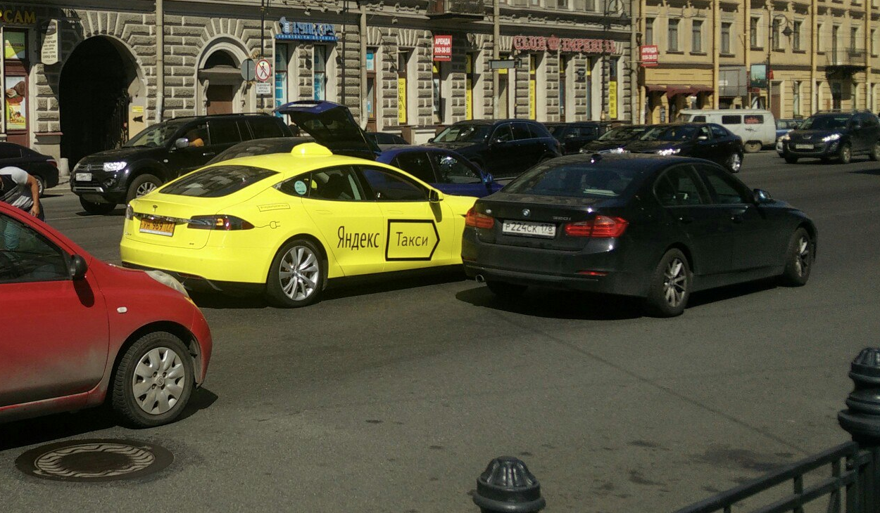 Электрокары Tesla с «шашечками» от "Яндекс.Такси" работают в Петербурге с 17 декабря 2015 года. Специально вызвать именно электрокар нельзя, автомобиль уходит на вызов на ряду с обычными автомобилями.