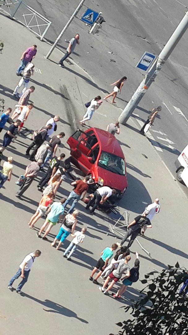 По предварительной информации, женщина-водитель красной машины почувствовала себя плохо и врезалась в другой автомобиль, после чего ее отбросило на тротуар. Там автомобиль совершил наезд на 46-летнего мужчину. Очевидцы произошедшего сразу отодвинули машину и остановили проезжавшую мимо «скорую помощь».