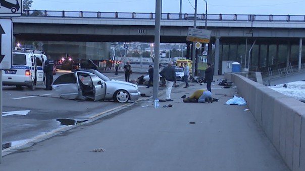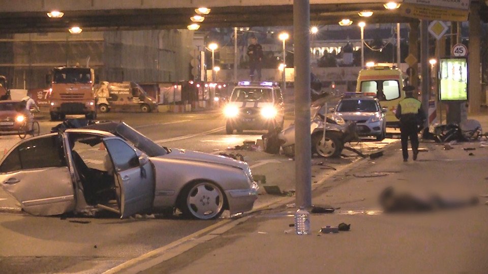 Сообщается, что автомобиль Mercedes врезался в мачту уличного освещения. От удара машину сильно деформировало, и для того, чтобы достать погибших и пострадавших, спасателям пришлось разрезать кузов.