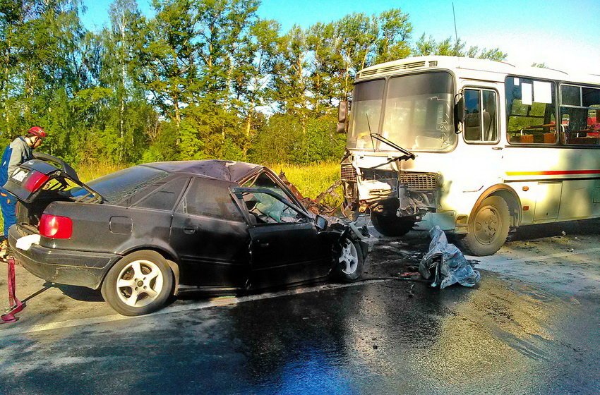 Сообщается, что на дороге столкнулись пассажирский ПАЗ, в салоне которого было 10 пассажиров, и легковой автомобиль Audi 80. По словам очевидцев, Audi выскочил на встречную полосу, где и врезался в маршрутку.