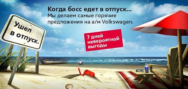 Торопитесь! Осталось совсем мало времени! Когда босс в отпуске, мы делаем самые решительные предложения на автомобили Volkswagen.