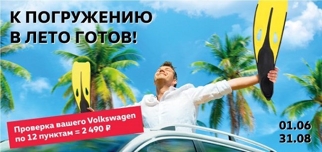 Получайте от лета максимум удовольствия, наслаждаясь отдыхом и дальними путешествиями с уверенностью в отличном техническом состоянии вашего Volkswagen. Приезжайте на комплексную проверку автомобиля перед отпуском в наш сервисный центр, воспользуйтесь приготовленными специально для вас выгодными пакетными предложениями и будьте готовы к погружению в беззаботное лето!