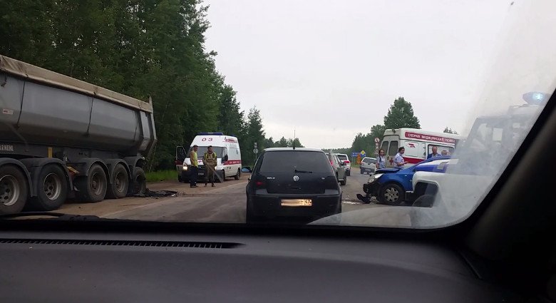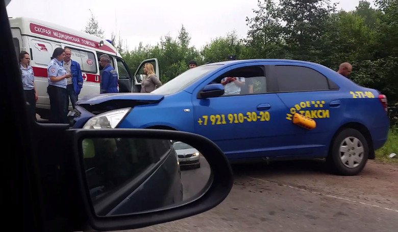 По предварительным данным, автомобиль такси Chevrolet Cobalt столкнулся с припаркованным на обочине грузовиком Scania с полуприцепом.