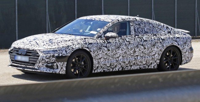 В Сеть выложили фотографии закамуфлированного прототипа лифтбека Audi A7 Sportback нового поколения. Премьера новинки ожидается в начале 2018 года.