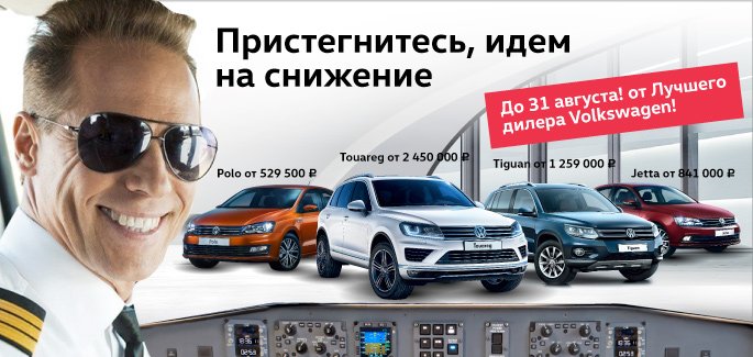 Компания «Автоцентр Сити — Каширка» предлагает Вам воспользоваться специальным предложением на ограниченный список автомобилей Volkswagen. Акция продлится до 31 августа!