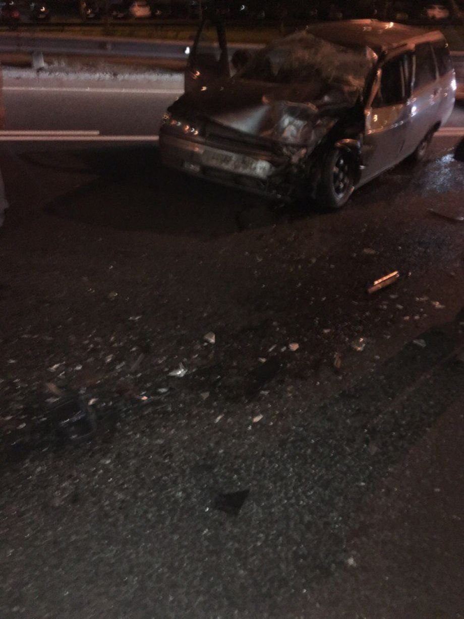 По предварительным данным, автомобиль ВАЗ-2111 врезался в попутную поливальную машину ГУДСП. От удара ВАЗ отбросило на отбойник.