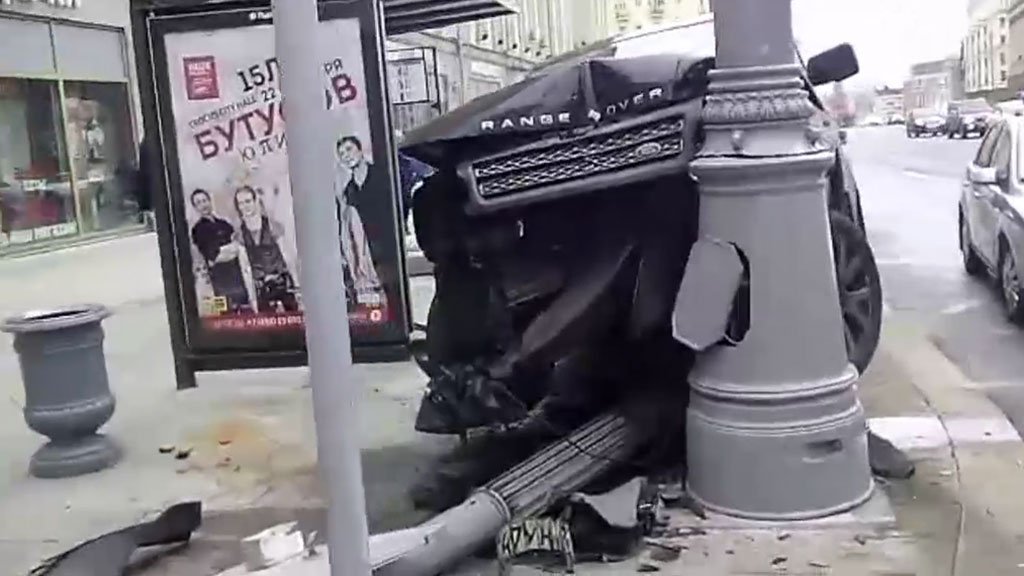 Range Rover протаранил остановку в центре Москвы