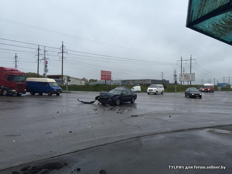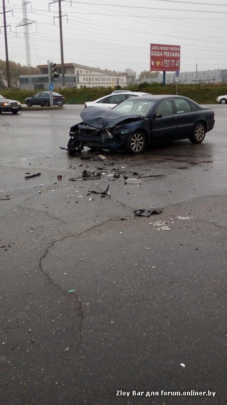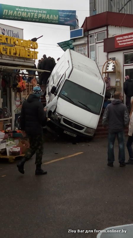 Крупная авария на Минском МКАД неподалеку от местного авторынка Малиновка. Водитель легкового автомобиля "Вольво" не пропустил ехавший во встречном направлении микроавтобус Opel, который, в результате сильного фронтального удара и попытки водителя в последний момент все таки попытаться избежать столкновения, улетел прямо на территорию рынка где и оказался на пешеходной лестнице рынка.