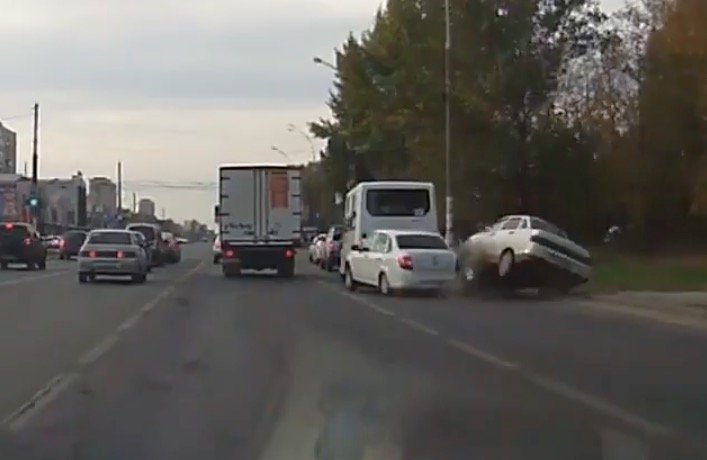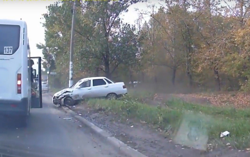 Крупная авария с опрокидыванием произошла утром 7 октября в Тольятти на Борковской улице. Водитель автомобиля ВАЗ 2110 белого цвета с тонированными стеклами на большой скорости предпринял попытку обгона стоящих на светофоре автомобилей справа, в результате чего допустил сильное столкновение с легковым автомобилем Лада и пассажирским микроавтобусом 137-го маршрута.