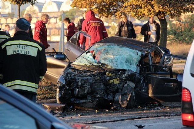 Крупная авария произошла 19 октября около 6:40 на улице Руднева в Севастополе. При столкновении маршрутки и легковушки один человек погиб и еще 14 пострадали.