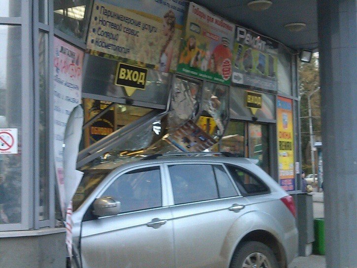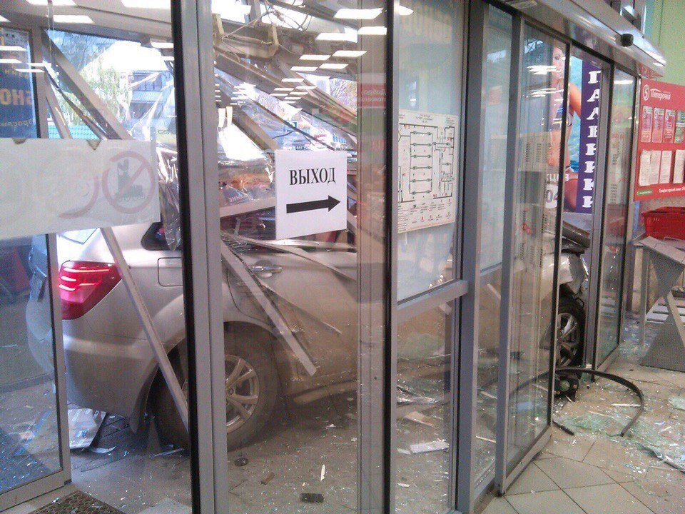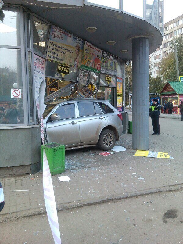 Это случилось сегодня вечером, 22 октября. По предварительным данным, пожилой водитель автомобиля Lifan не справился с управлением. Его машина выехала на тротуар и пврезаась в здание ТЦ рядом с главным входом в магазин. При этом в происшествии так же пострадал пешеход, который был доставлен в больницу.