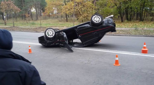 В Киеве белка испугала водителя и он перевернул свой автомобиль