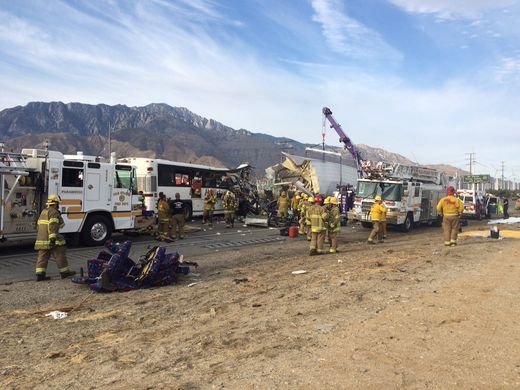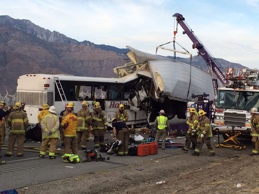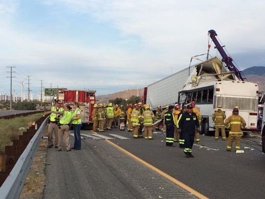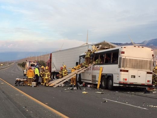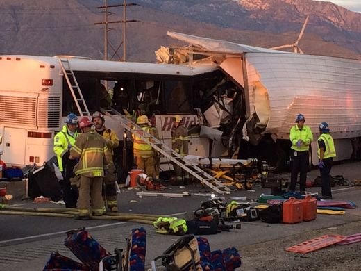 В США, недалеко от города Палм-Спрингс (штат Калифорния) в воскресенье 23 октября, пассажирский автобус попал в ДТП, врезавшись в ехавший впереди грузовик.