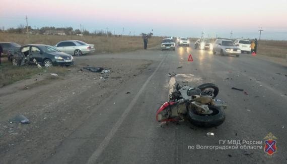 Авария случилась вечером в 17:10 25 октября на 43 километре автодороги «Волжский - Средняя Ахтуба - Ленинск» в Среднеахтубинском районе. Как сообщает пресс-служба ГУ МВД по региону, автомобиль Volkswagen Jetta под управлением мужчины 65 лет, не предоставил преимущество в движении мотоциклу Honda, нарушив правила дорожного движения.
