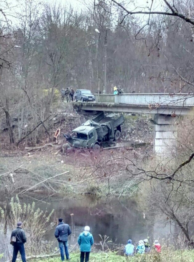 В Ленинградской области в ночь на 30 октября военный грузовой «КамАЗ» упал с моста. Происшествие случилось в Луге, военная машина ехала по мосту со стороны Заречного парка. В кабине грузовика находились трое солдат срочной службы.