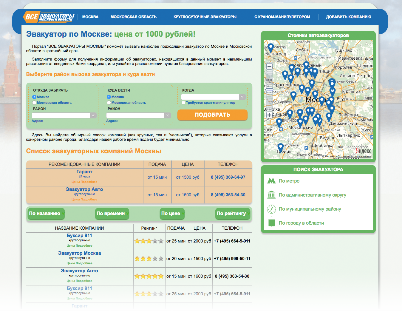 Специализированный сайт "Все эвакуаторы Москвы" поможет московским автомобилистам