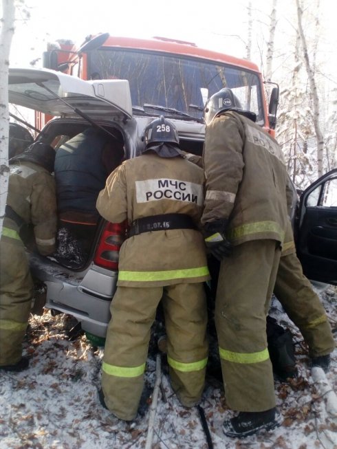 По предварительным данным, автомобиль КамАЗ выехал на полосу встречного движения и врезался в легковую машину.