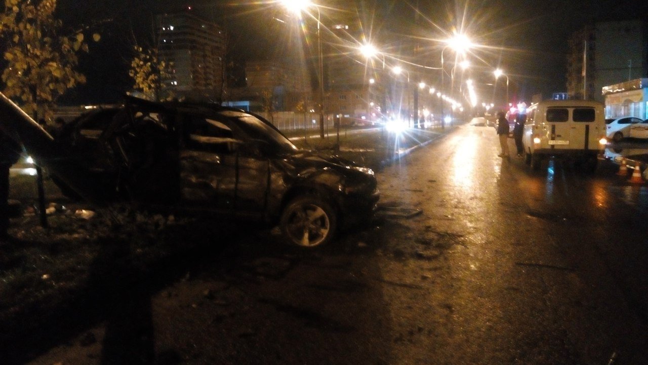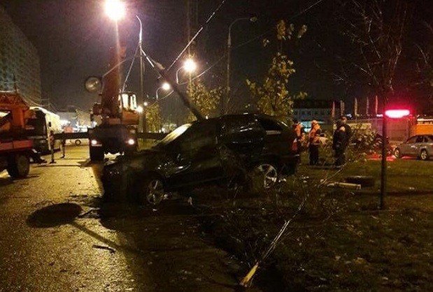 По имеющимся данным, водитель автомобиля BMW X5 потерял управление и сбил двух молодых человек лет 25 на вид, находившихся на разделительном газоне, после чего снес несколько деревьев, дорожных знаков и остановился, врезавшись в столб.