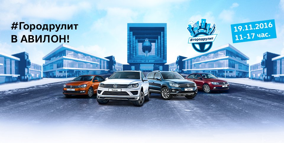 В этот день Вас ожидает увлекательнейший квест-драйв «ГОРОД РУЛИТ в АВИЛОН VOLKSWAGEN»! Почувствуйте себя полноправным жителем мегаполиса, зарядившись городским драйвом, тем более, что победители квеста получат подарки от АВИЛОНА.