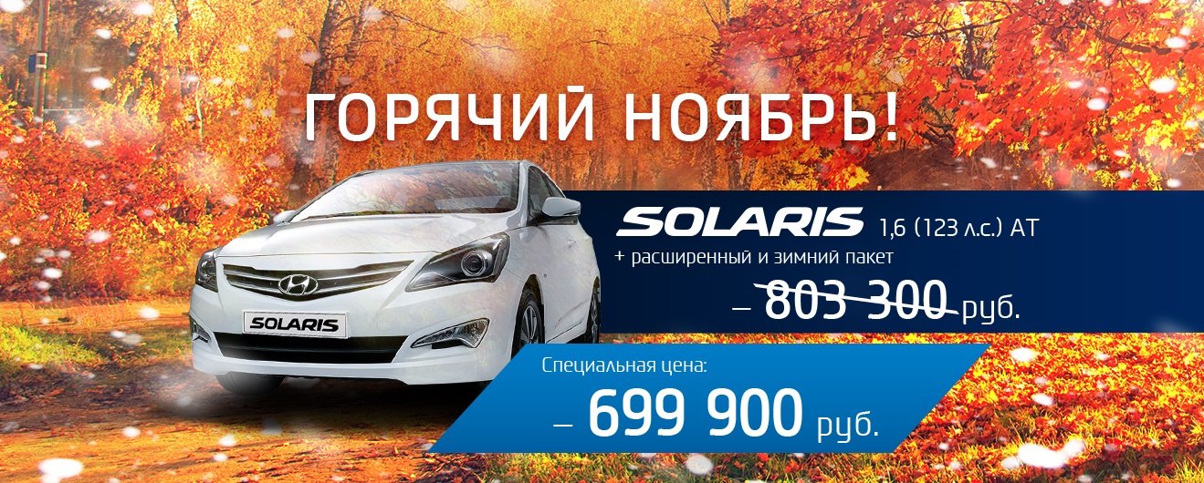 Горячий ноябрь! Hyundai Solaris по специальной цене в АВИЛОН!