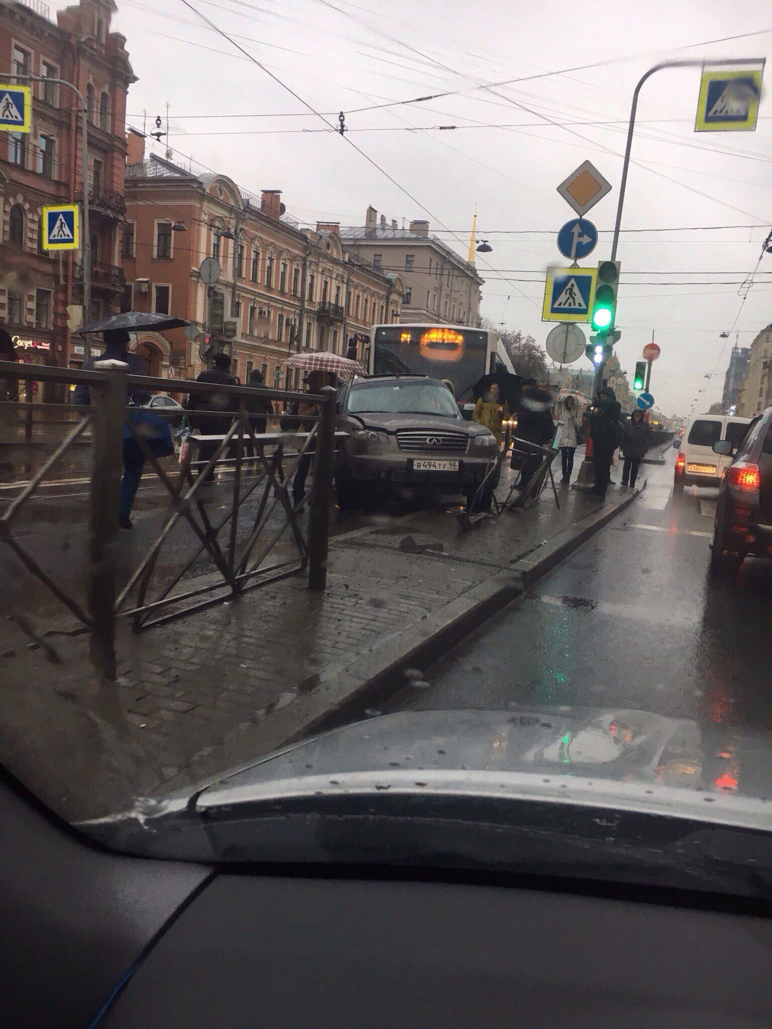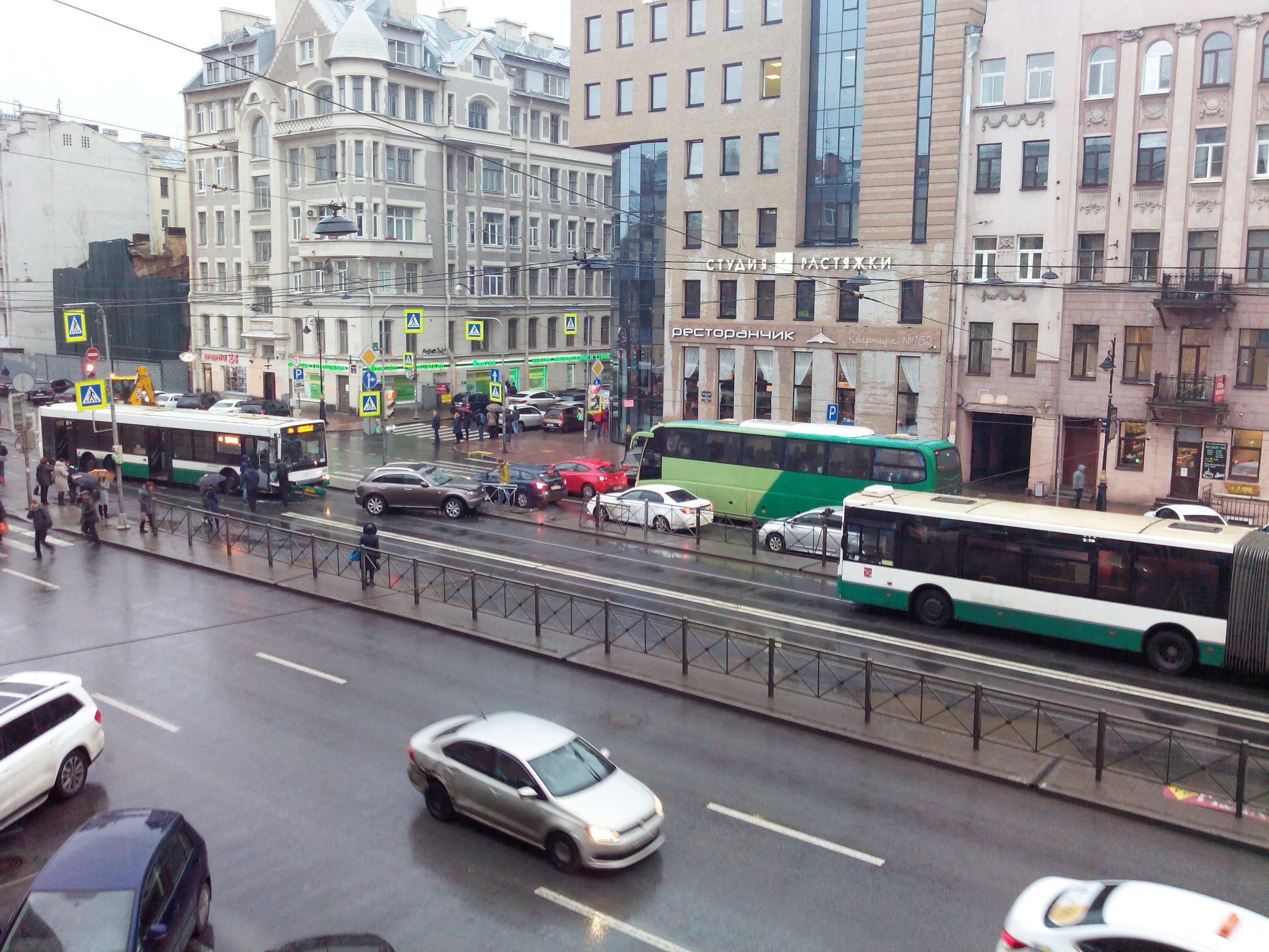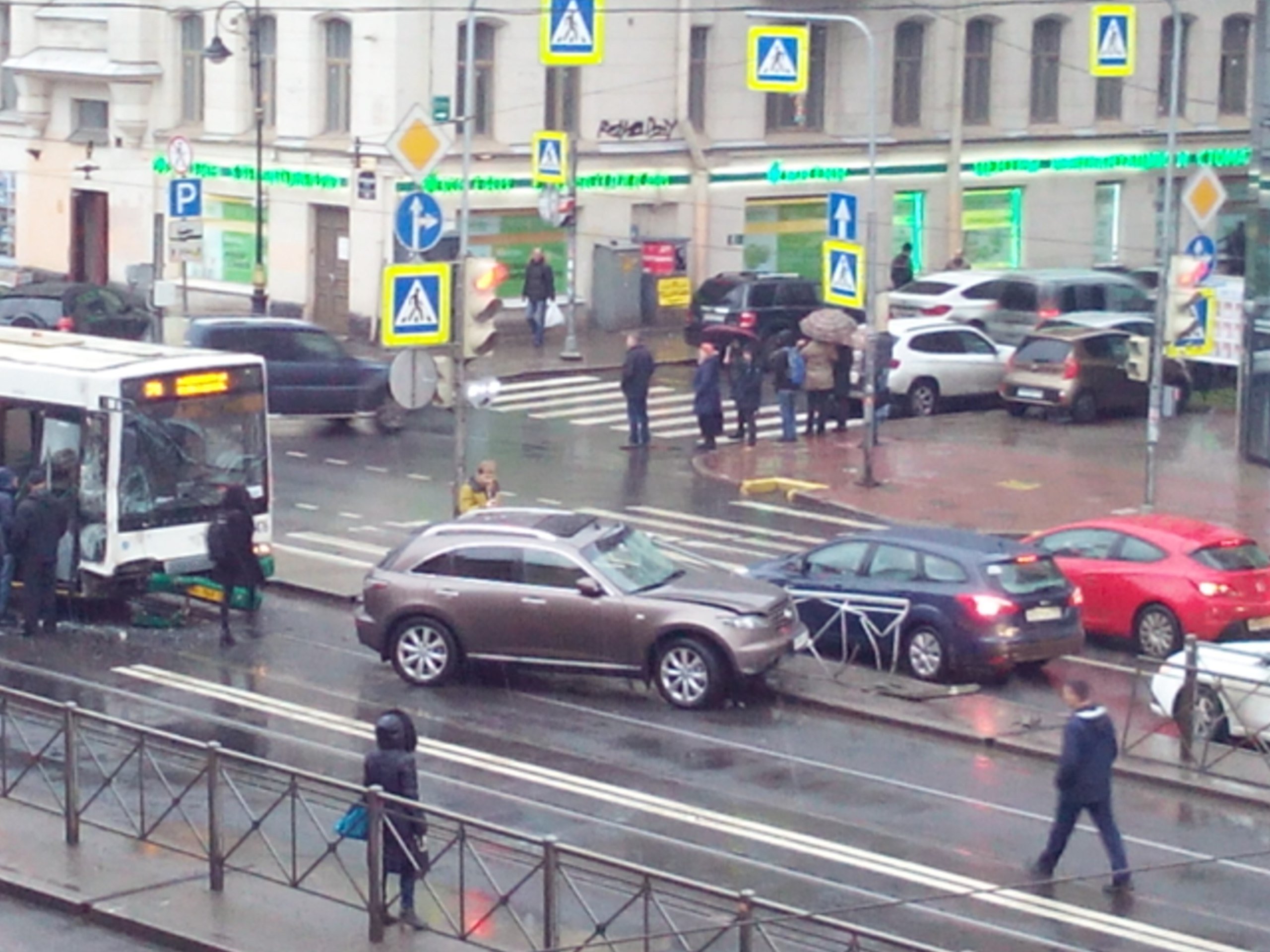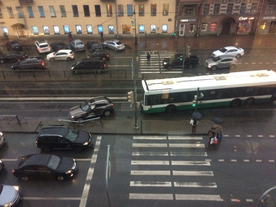 Днем в четверг, 24 ноября, на пересечении Лиговского проспекта с Рязанским переулком в центре Санкт-Петербурга столкнулись автобус и легковушка.