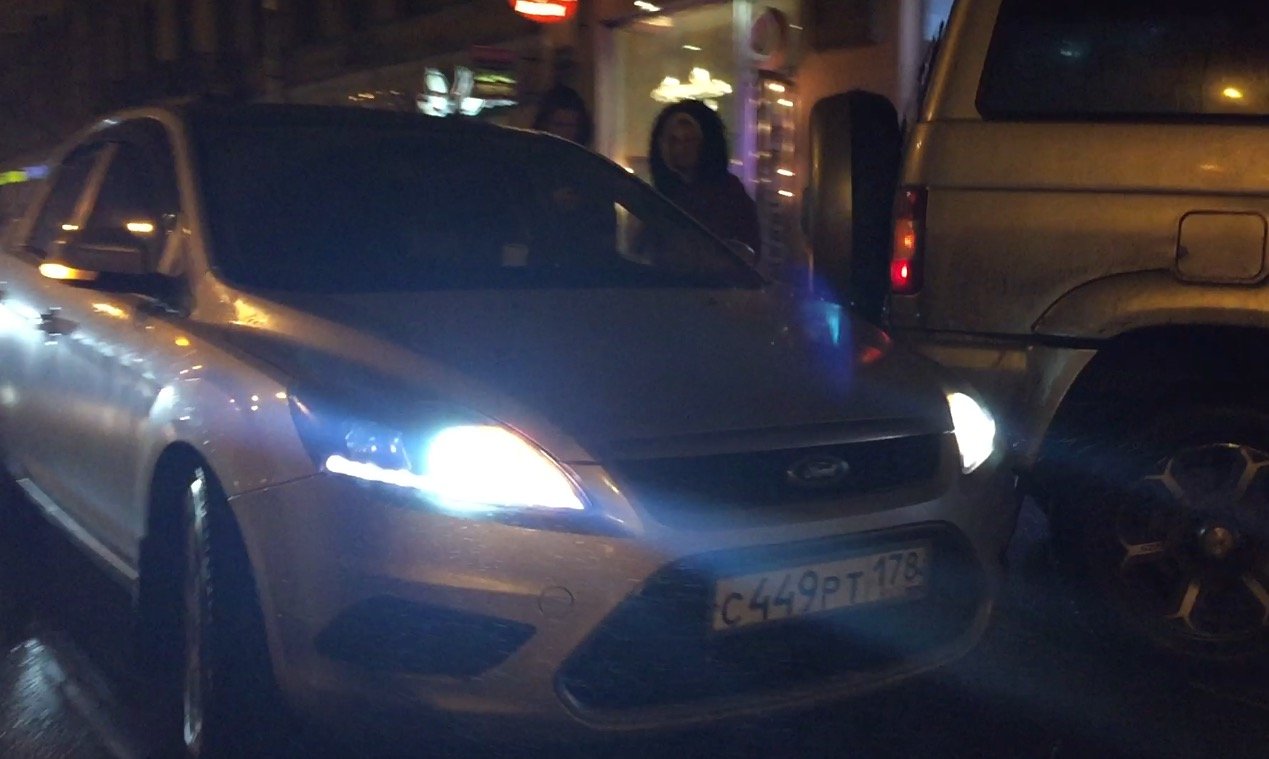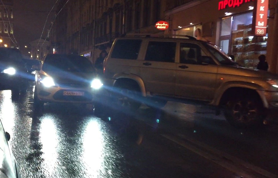 Авария на Загородном проспекте - в притормозивший перед поворотом во двор УАЗ Патриот врезался ехавший следом хэтчбэк Ford Focus. Никто не пострадал. ДТП случилось на полосе движения общественного транспорта в встречном направлении по Загородному проспекту.