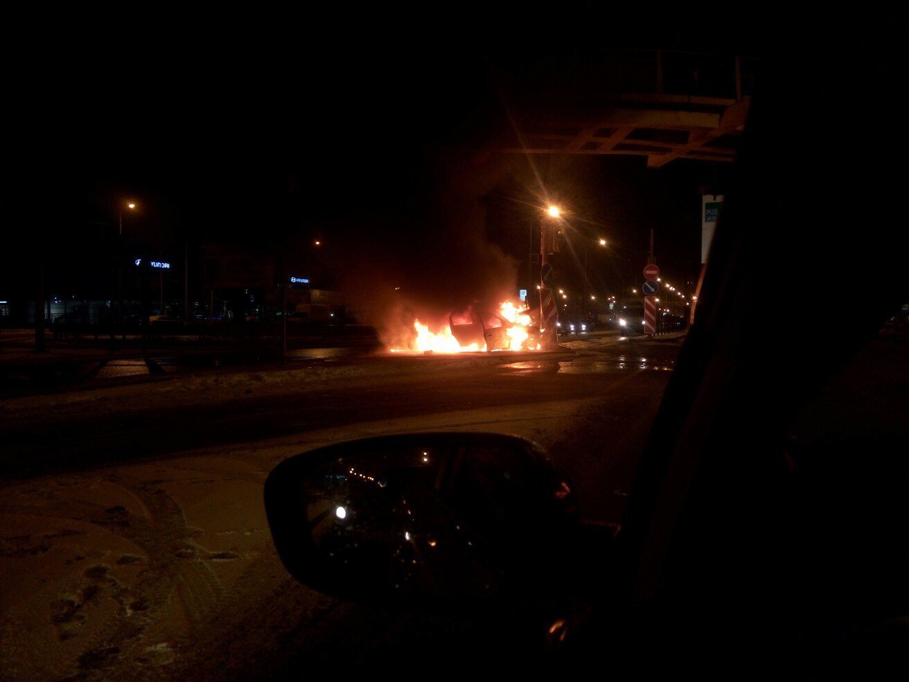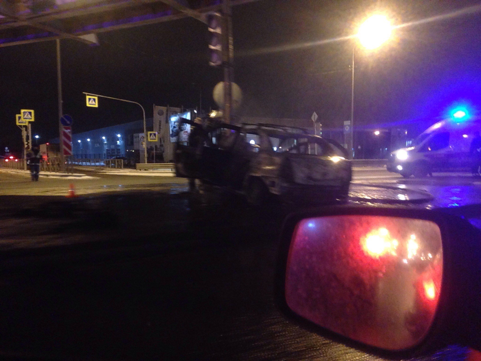 На Таллинском шоссе в Петербурге после ДТП сгорела иномарка