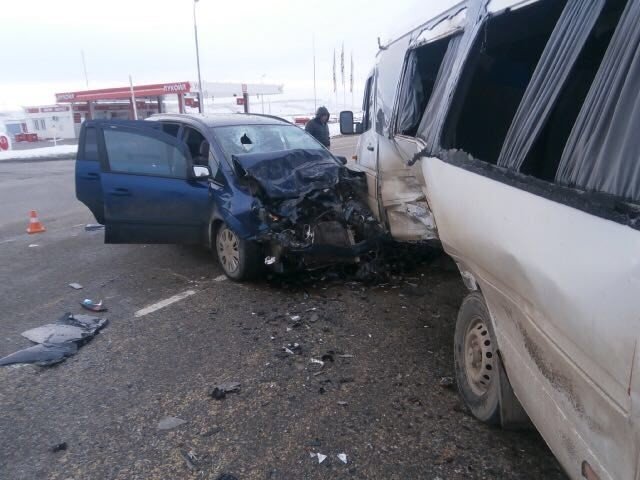 Сообщается, что на трассе столкнулись рейсовый микроавтобус Mercedes с шестью пассажирами, следующий по маршруту «Ставрополь - Волгоград» и автомобиль Opel.